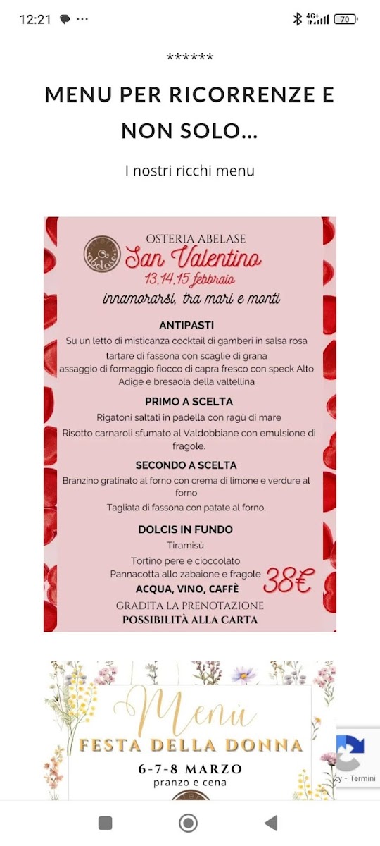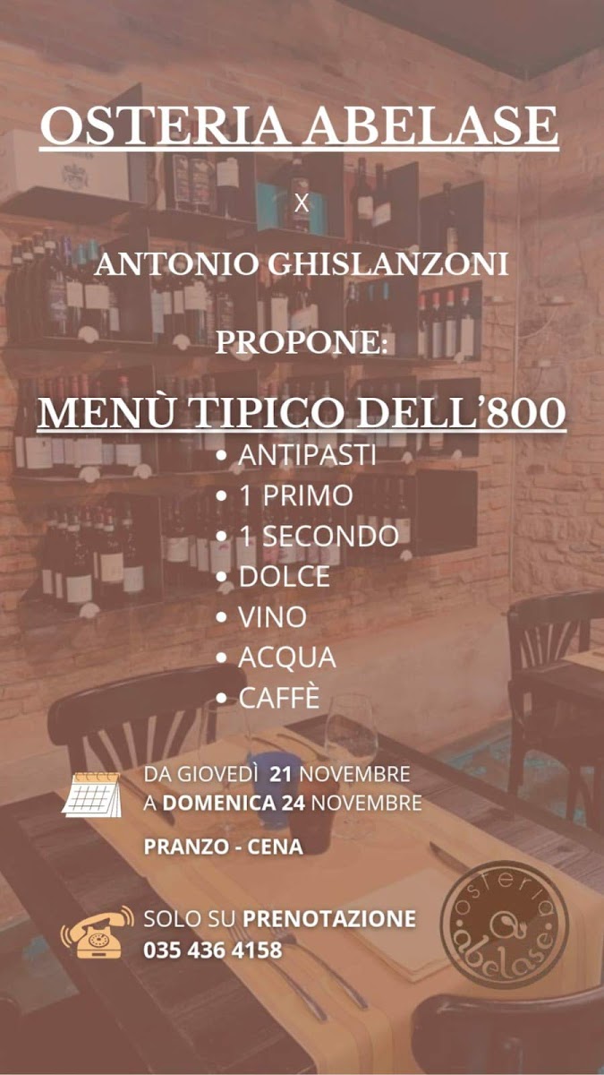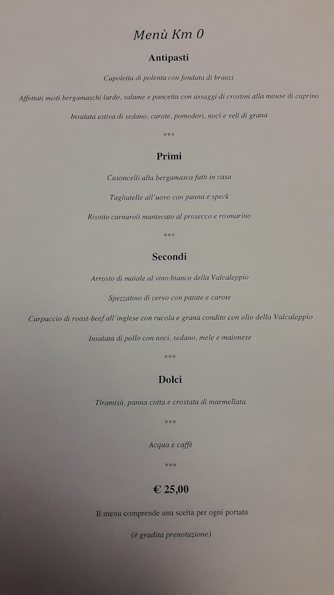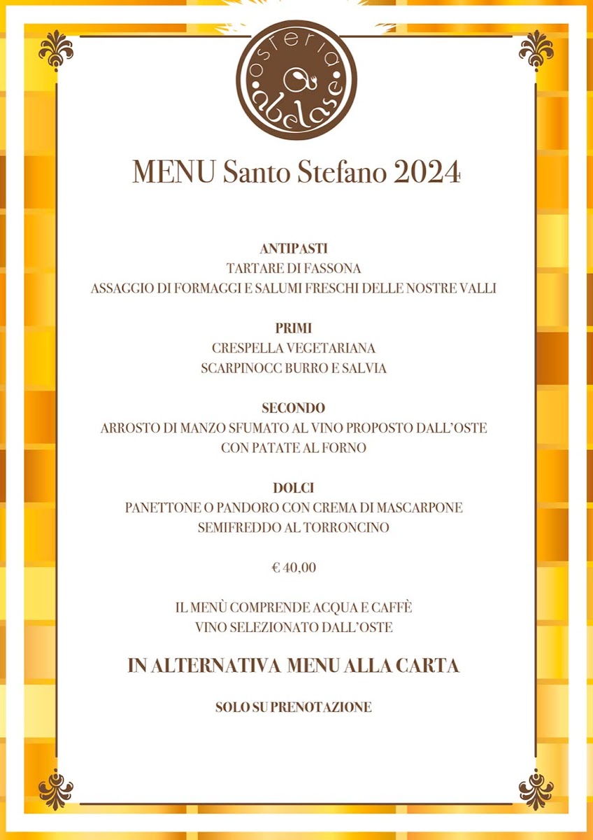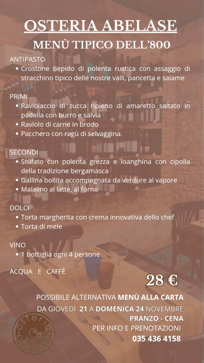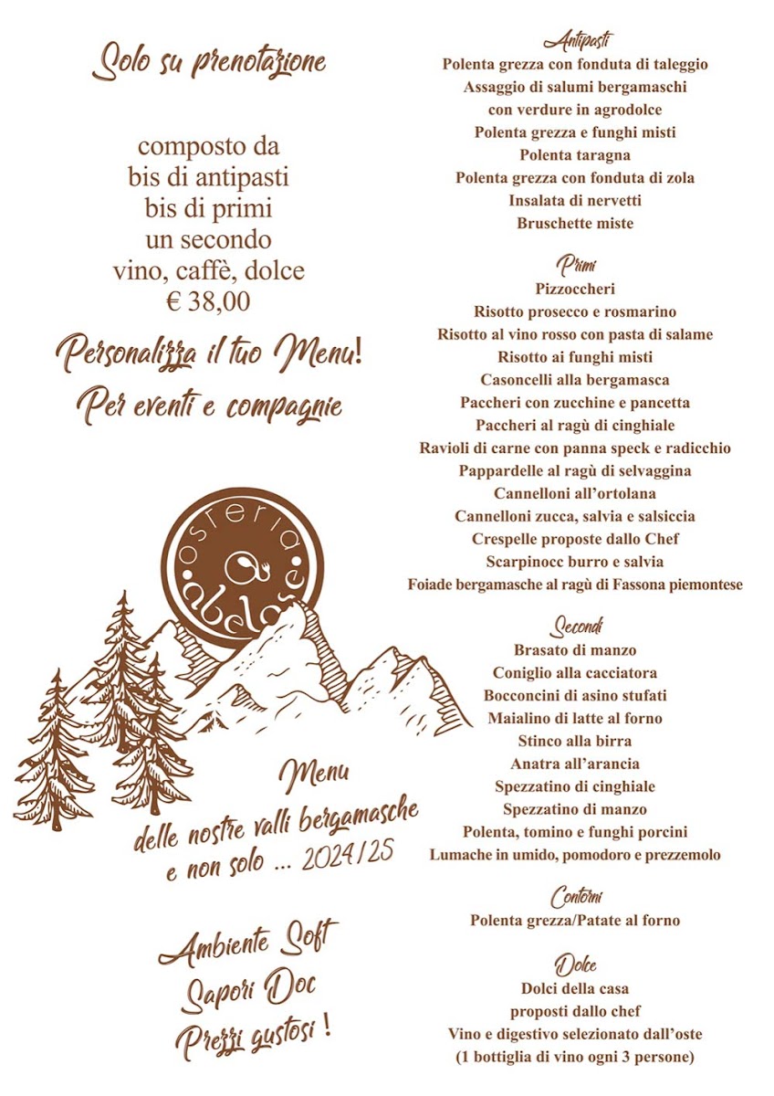 Osteria Abelase offers a rich, authentic dining experience that celebrates the flavors of Bergamasco cuisine. The menu features a variety of carefully crafted dishes, each showcasing fresh, high-quality ingredients. Among the standout offerings is the Affettati Misti Bergamaschi, a delightful assortment of local cured meats, perfect for those looking to savor traditional flavors. For those seeking a heartier dish, the Tagliata Di Manzo Con Porcini stands out, offering a tender beef steak paired with flavorful porcini mushrooms. A true highlight of the menu is the Semifreddo Ai Tre Cioccolati, a delectable dessert that combines the richness of three types of chocolate into a creamy, indulgent treat. Additionally, the Grigliata Mista provides a satisfying selection of grilled meats, ideal for sharing and enjoying the smoky flavors of expertly cooked cuts. Whether you're in the mood for a savory main or a sweet finish, Osteria Abelase delivers a memorable meal that captures the essence of local Italian cuisine.
